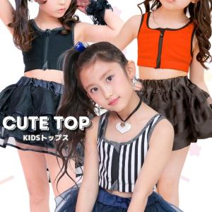 ダンス 衣装 ダンス衣装 キッズ トップス 黒 赤 ストライプ ノースリーブ ハーフトップ ヒップホップ 110 130 150 衣装 キュートトップ セール