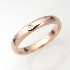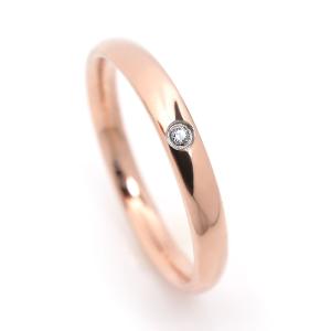 ステンレス 甲丸リング 2.5mm幅 キュービックジルコニア入り ピンクゴールド 名前 記念日 メッセージ 刻印可能