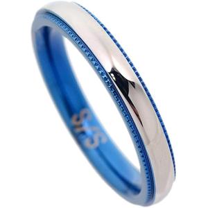 ステンレス ミル打ちデザインリング 3mm幅 ブルー 名前 記念日 メ ッセージ 刻印可能