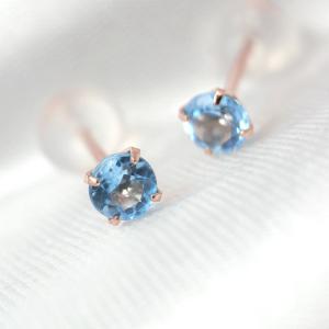 K10 ピンクゴールド ピアス 4本爪 3mm石 天然ブルートパーズ