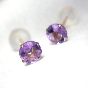 K10 イエローゴールド ピアス 4本爪 4mm石 天然アメジスト