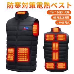 電熱ベスト 暖かい 冬用 防寒着 前後独立ヒーターで3段階温度調節 10秒急速暖房 軽量 ヒートベスト ヒーターベスト 男女兼用 アウトドア 工事 作業用 丸洗い可能