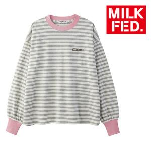 tシャツ ミルクフェド MILKFED BAR LOGO STRIPED TOP レディース トップス カットソー 黒 ボーダー ロンティ 長袖