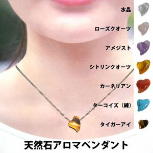 天然石アロマペンダント ハート形【香水等を入れる穴有】水晶 ローズクオーツ アメジスト シトリンクオーツ カーネリアン ターコイズ(練) タイガーアイ