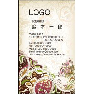カラーデザイン名刺 ショップカード 印刷 作成 100枚 ロゴ入れ可 ペイズリー 花 エレガント elegant006