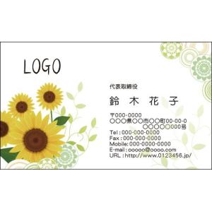 カラーデザイン名刺 ショップカード 印刷 作成 100枚 ロゴ入れ可 花 フラワー ひまわり flower003