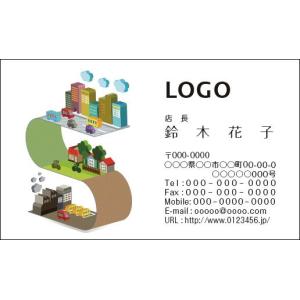 カラーデザイン名刺 ショップカード 印刷 作成 100枚 ロゴ入れ可 建築 不動産 街 life001