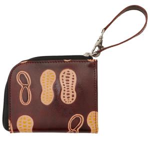 山羊革 L字ファスナー財布 ピーナッツ柄(こげ茶) (メール便対応)