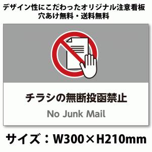 A4サイズおしゃれイラスト注意看板「チラシの無断投函禁止」(英語併記:No Junk Mail)/高耐性屋外用/送料無料