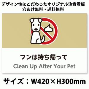 A3サイズイラスト注意看板「フンは持ち帰って」(英語併記:Clean up After Your Pet)/犬の糞禁止/高耐性屋外用/送料無料