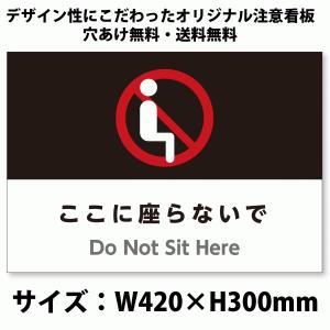 A3サイズおしゃれ注意看板「ここに座らないで」(英語併記:Do Not Sit Here)/座るな看板/高耐性屋外用/送料無料