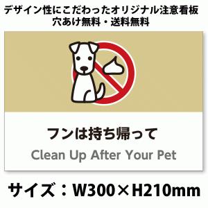 A4サイズイラスト注意看板「フンは持ち帰って」(英語併記:Clean Up After Your Pet)/犬の糞禁止/高耐性屋外用/送料無料