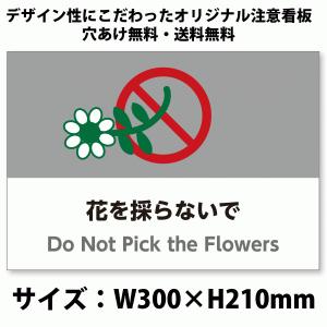 A4サイズおしゃれイラスト注意看板「花を採らないで」(英語併記:Do Not Pick the Flowers)/高耐性屋外用/送料無料