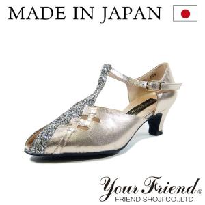 社交ダンスシューズ 女性兼用シューズ [モダン&ラテン] FK-FW5030-BG 【ベージュサティーナGラメ】【幅広・ワイド】【外反母趾対応】【日本製】【5cmヒール】