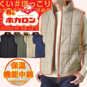 着るホカロン 保温中綿 ベスト メンズ アウター ダウンベスト 暖かい 防寒着 ジレ ブルゾン スタンド 軽量 送料無料 父の日 通販YC
