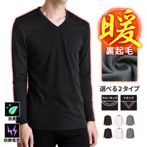 あったか裏起毛 長袖Tシャツ メンズ ストレッチ インナー 防寒 消臭 静電気防止 秋冬 送料無料 通販YC