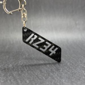 ドライカーボン オリジナル文字列 キーホルダー 受発注 車の型式やイニシャル、数字などなど 掘り込み文字
