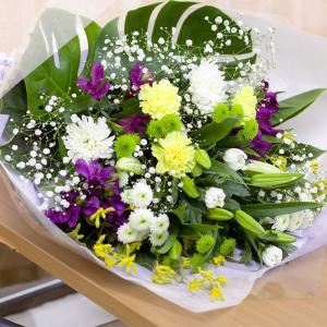お供え 生花 花束 Lサイズ 墓参り 墓前 霊前 仏壇 弔事用 法事 四十九日 ご命日 おまかせ 宅配