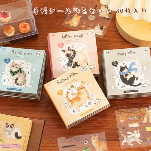 シール ご褒美シール ステッカー かわいい猫 4点セット 80枚入り 手帳シール DIY 文房具 女の子 男の子 手帳デコ 可愛い