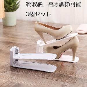 靴 収納 省スペース 収納量2倍 シュースペースセーバー 3個セット 高さ調節可能 スニーカー ハイヒール 収納 男女兼用 コンパクト ホワイト