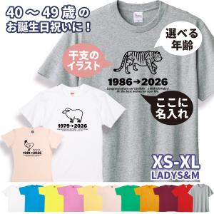 40代 干支 名入れ Tシャツ 誕生日 プレゼント 40歳 41歳 45歳 42歳 43歳 44歳 46歳 47歳 48歳 49歳 オリジナル 男性 女性 巳 辰 馬 競馬 名前 1501 1500 085