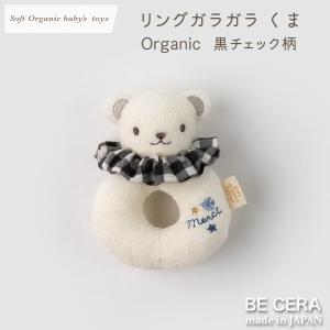 ガラガラ ラトル 3way リングガラガラ くま ブラック 黒 チェック柄 シュシュ オーガニックコットン 出産祝い おしゃれ かわいい 日本製 女の子 男の子 おもちゃ