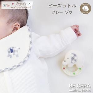 オーガニック ビーズラトル ゾウ 象 ぞう グレー チェック柄 パイル地 ラトル 日本製 赤ちゃん おもちゃ ファーストトイ