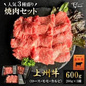 牛肉 焼肉セット 人気の3種盛り合わせ 合計600g 上州牛 ロース カルビ モモ 焼肉用 高級国産牛 BBQ 200g × 3種 霜降り肉 赤身 送料無料 お歳暮 焼き肉 定番部位