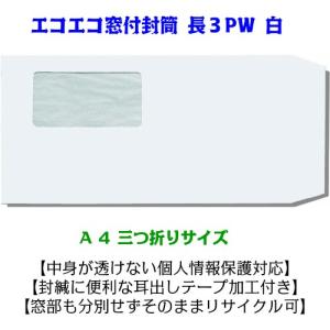 封筒 長3 窓付き封筒 透けない白 エコ窓 耳だしテープ付 A4三つ折り 1,000枚