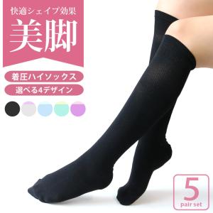 着圧 引き締め ハイソックス 5足セット 美脚シリーズ