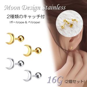ピアス ネジ式 キャッチ 16g ステンレス 月 かわいい 小ぶり 三日月 キラキ ネジ ねじ 2種類のキャッチ付 [2個入り] [ クリックポスト対応 ]