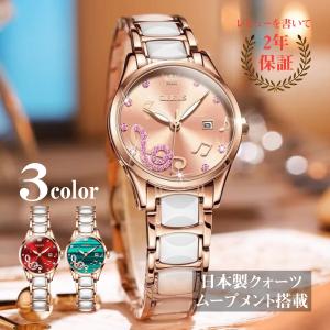腕時計 レディース 20代 30代 40代 OLEVS クォーツ 音符 ト音記号 日付表示 3605