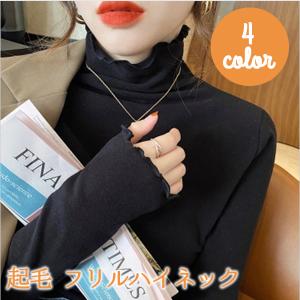 ハイネックフリルトップス 起毛 レディース ハイネック レイヤード インナー フリル襟 長袖 重ね着 韓国ファッション おしゃれ 秋冬コーデ