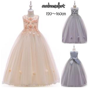 子供ドレス お花モチーフ ロングドレス 発表会 お誕生日 結婚式 フォーマルワンピース コンクール シャンパンゴールド グレー 120 130 140 150 160 cm