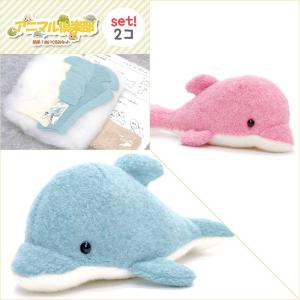 【手芸キット】動物ぬいぐるみ アニマル倶楽部 2個セット(イルカ ブルー・イルカ ピンク)夏休み子供手芸 生地型抜き済 作り方説明書・綿・ペレット付・他