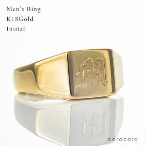 18金印台ゴールドメンズリングイニシャル刻印K18金機械彫刻指輪刻印入り保証書付き