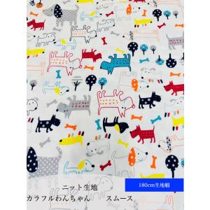 ニット生地 カラフルわんちゃん スムース ハンドメイド 子供服 犬服