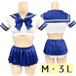 スーパーウェット 半袖 配色 ミニ丈セーラー&ミニスカートセット M 3L wbb-9700 ネイビー レオタード レディース ミニ丈 光沢 伸縮性 コスプレ コスチューム