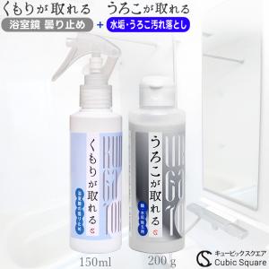 浴室鏡 くもり止め 水垢落とし うろこが取れる + くもりが取れる 150ml セット 水垢 水アカ 水垢クリーナー 鏡 曇り止め お風呂 浴室 浴室掃除 送料無料