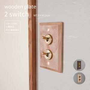 トグルスイッチ 木製プレート 2スイッチ 電気スイッチ DIYパーツ 照明器具 おしゃれ レトロ 真鍮 スイッチカバー 配線カバー 3路対応 リフォーム