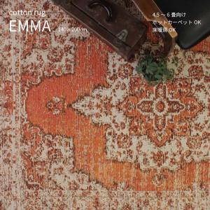 ラグ 140×200cm ジャガード織 コットン オレンジ ヴィンテージ おしゃれ 床暖房 ホットカーペット 4.5畳 ミッドセンチュリー クラッシック EMMA