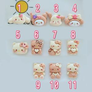 9種類から選べるネイルサイズのいちごネコ 5個セット☆プラスチック製貼り付けデコパーツ 猫 ねこ ストロベリー
