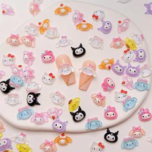 ネイルサイズの全身タイプキャラクターパーツ 5個セット☆プラスチック製貼り付けデコパーツ 猫 ねこ ネコ うさぎ ウサギ 兎 動物