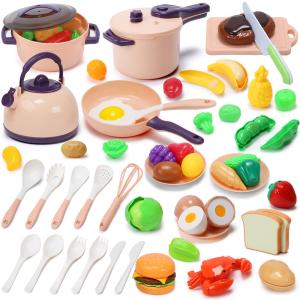 Cute Stone おままごとキッチン 知育玩具 64点 おままごと おもちゃ リアルスプレー ごっこ遊び 豊富な食材 収納スペース 台所 子供 玩具 誕生日プレゼント