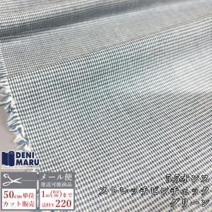 チェック 生地 薄手 コットン 5.5オンス ストレッチ グリーン シャツ ピンチェック パンツ スカート 商用利用可能 日本製 岡山 でに丸