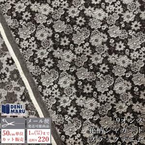 ジャガード 生地 薄手 デニム 9オンス ブラックデニム 花柄 フラワー ジーンズ 手芸 日本製 国産 布 商用利用可 でに丸