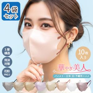 バイカラー 3D 立体 不織布 マスク 4袋 華やぎ美人 おしゃれ カラー 小顔効果 かわいい ウイルス飛沫 まとめ買い お得