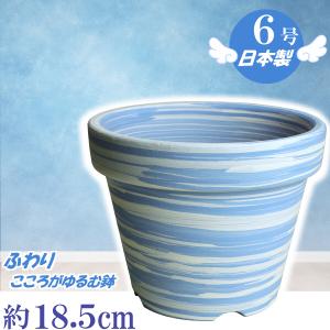 植木鉢 おしゃれ 安い 陶器 サイズ 18cm ふわりポット 6号 マーブルブルー 室内 屋外 白 色 常滑焼