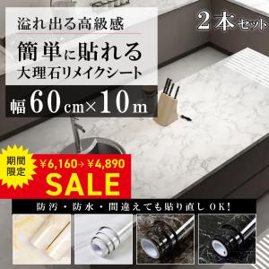 大理石シート 2本セット 防水 大理石 白 壁紙 耐熱シート 61cmx5m テーブル耐熱 防油 防カビ キッチンリメイクシート 大理石調 壁紙シール 防汚