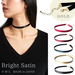 チョーカー ネックレス ブライトサテン リボン 無地 金具ゴールド 日本製 3サイズ メンズ レディース 結婚式 パーティー 衣装 アクセサリー メール便 dplus arts